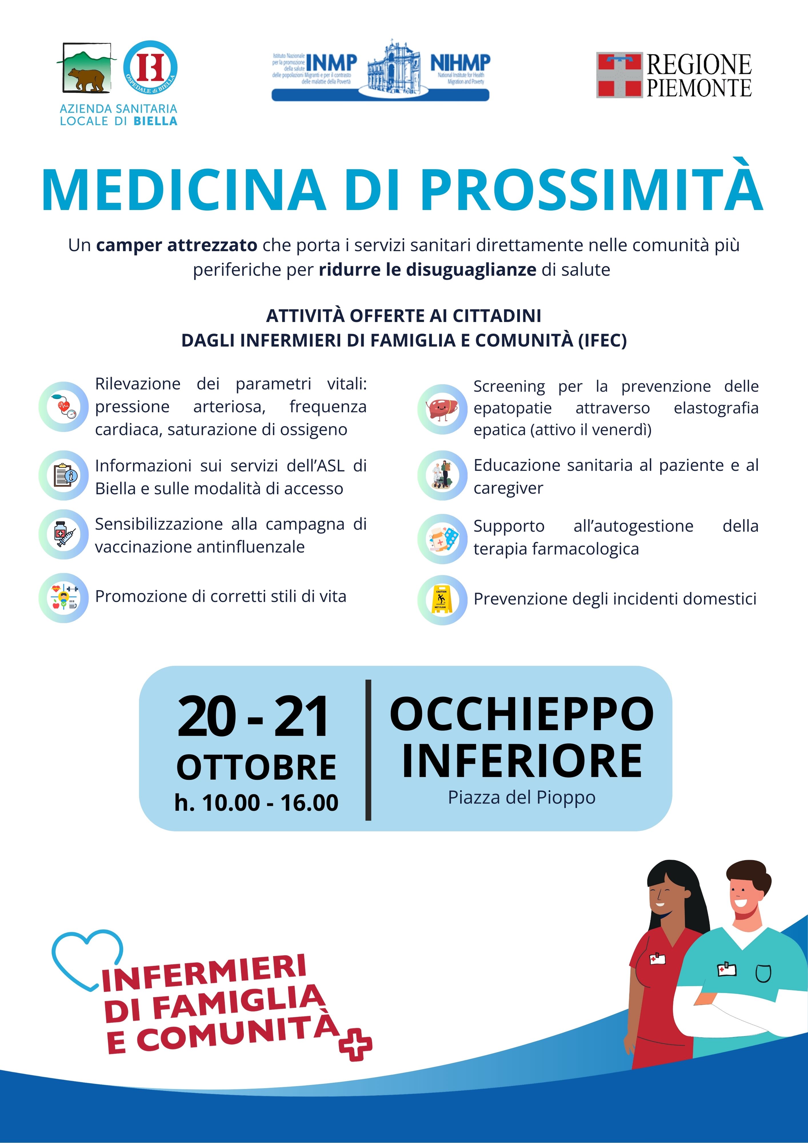 Il 20 e il 21 ottobre 2025, presso Piazza del Pioppo ad Occhieppo Inferiore, sarà presente un camper attrezzato che offrirà ai cittadini i servizi sanitari più dettagliatamente descritti nella locandina allegata.